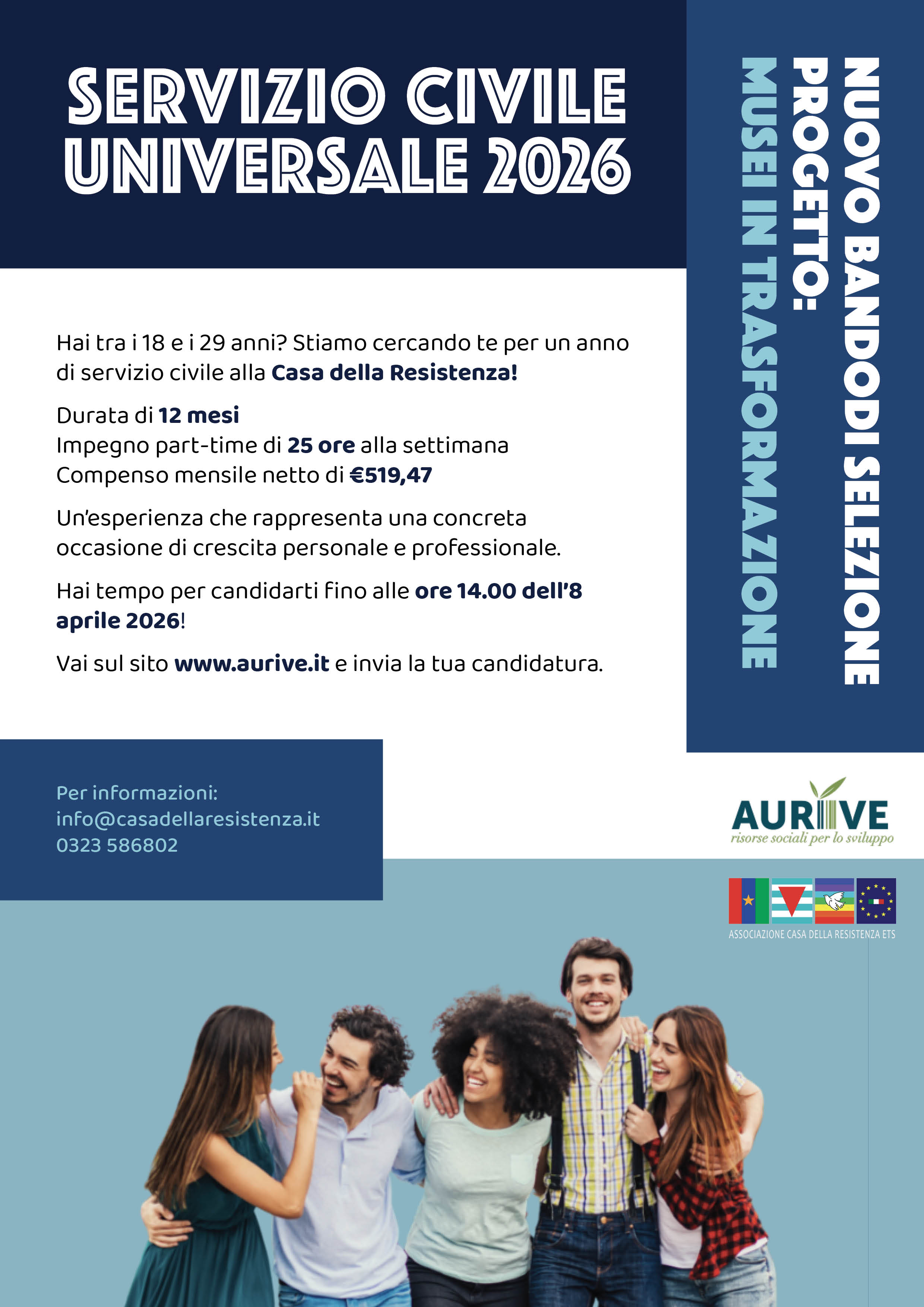 Hai tra i 18 e 29 anni? Stiamo cercando te per un anno di Servizio Civile alla Casa della Resistenza.