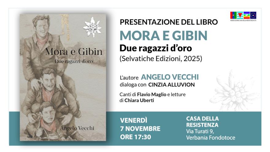 Venerdì 7 novembre alle 17:30 presenteremo il volume Mora e Gibin. Due ragazzi d'oro (Selvatiche Edizioni, 2025) di Angelo Vecchi. Il libro narra l’episodio dell’orribile uccisione a Cressa dei due giovani partigiani Ernesto Mora ed Enzo Gibin, il 23 febbraio 1945, ancora vivo nella memoria del Novarese. Angelo Vecchi ricostruisce la storia dei due ragazzi che, anche grazie all’attiva militanza antifascista e memoriale delle loro famiglie, verranno insigniti della Medaglia d’oro al valor militare alla memoria. Dal racconto di Vecchi, emergono le passioni dei due giovani, il lavoro in fabbrica e infine la scelta della Resistenza, con il tragico epilogo, a quasi due mesi dalla Liberazione. Durante la presentazione l'autore Angelo Vecchi dialogherà con Cinzia Alluvion. Seguiranno canti di Flavio Maglio e letture di Chiara Uberti.