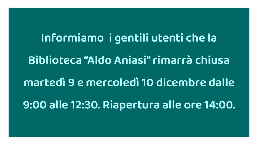 Chiusura straordinaria - Biblioteca "A. Aniasi"