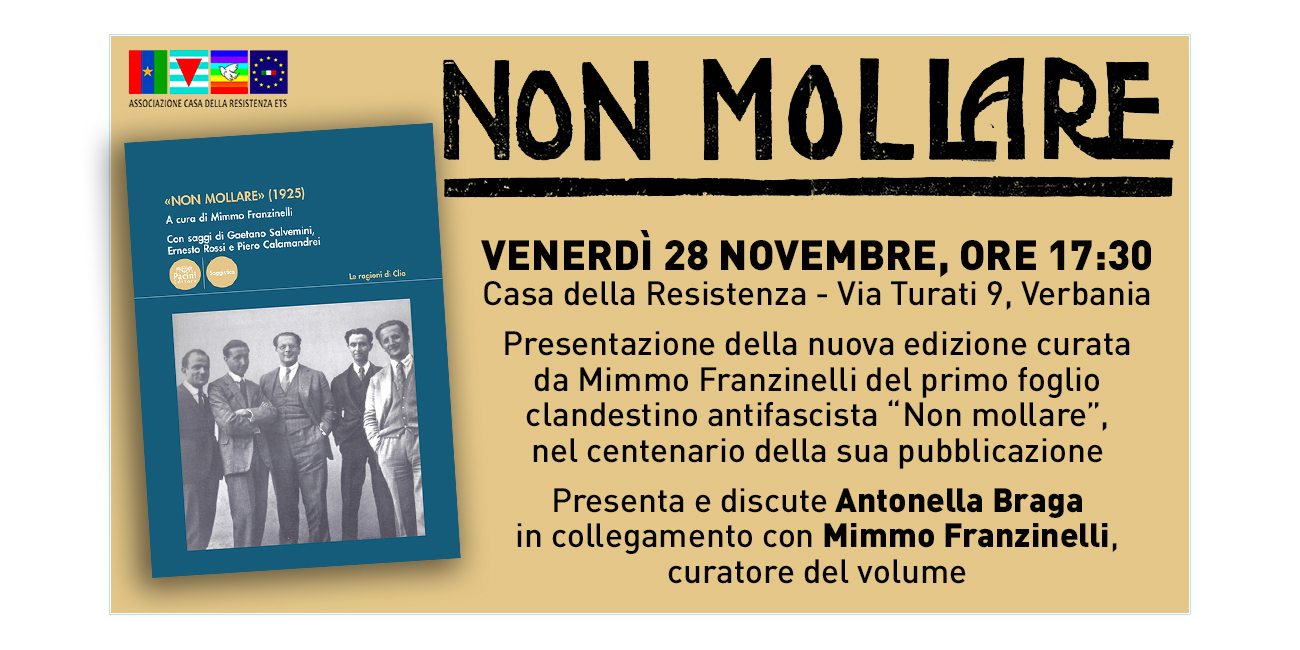 Venerdì 28 novembre alle ore 17:30 presenteramo la nuova edizione curata di Mimmo Franzinelli del primo foglio clandestino antifascista «Non Mollare» (1925) nel centenario della sua nascita e ripubblicato nel 2025 da Pacini Editore. Presenta e discute Antonella Braga in collegamento con Mimmo Franzinelli, curatore del volume.